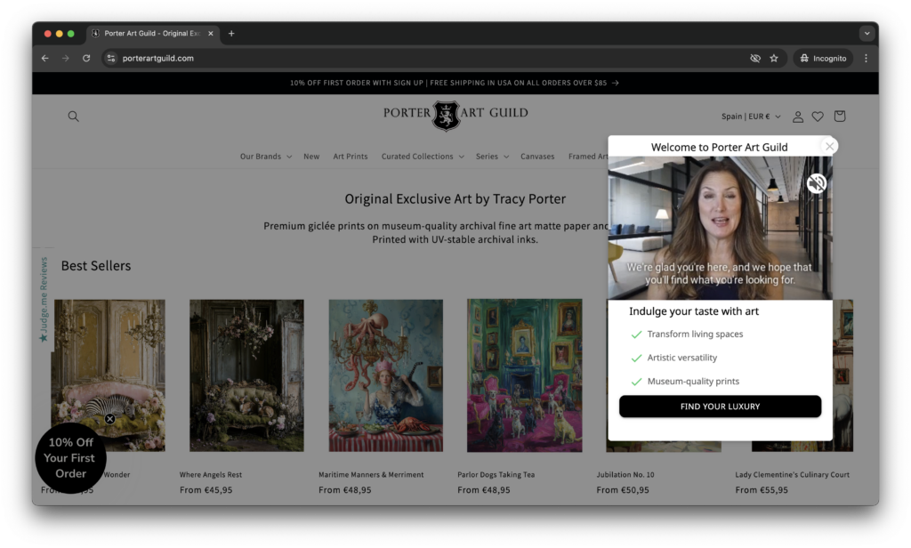 - Awareness-stage visitors: Visitors discovering Porter Art Guild for the first time received warm, brand-introducing microvideos that set expectations and explained the artistic world behind each collection. This replaced confusion with clarity from the very first impression.