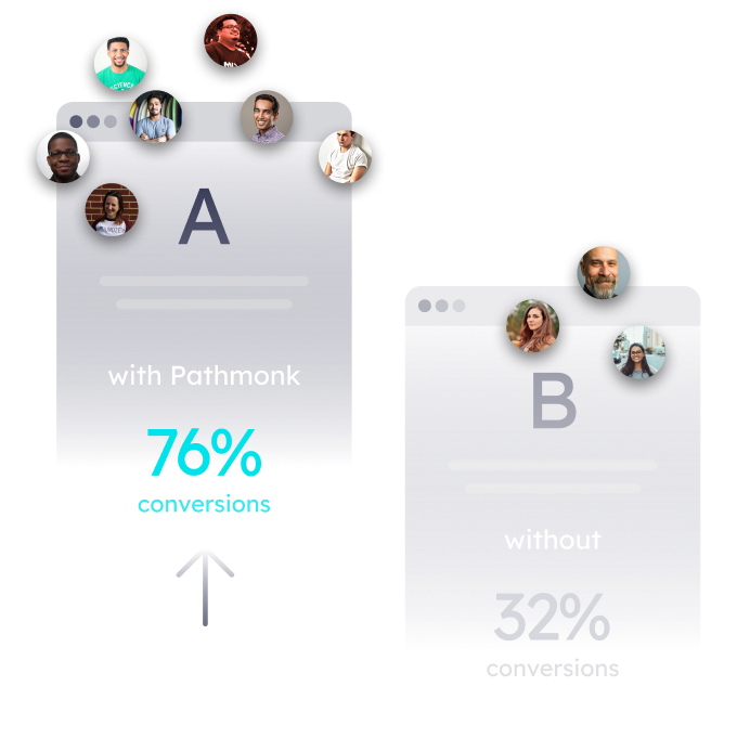 By giving visitors the right nudge at the right moment, Pathmonk helps turn more of them into leads, without you having to manually adjust anything. Our software figures out what each person wants and shows them exactly what will make them engage, which means more people filling out forms, scheduling demos, or signing up for your services.